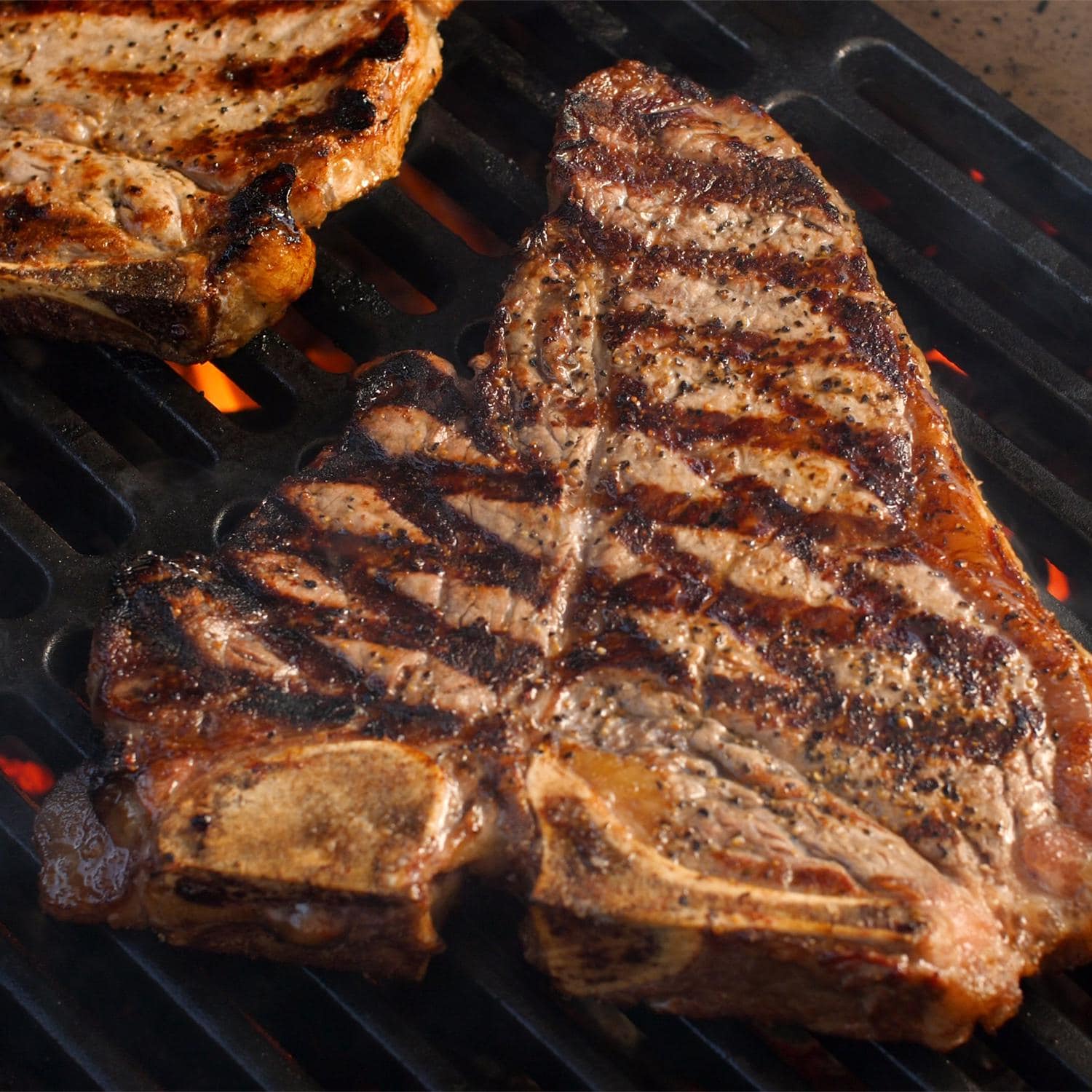 Enhance your Primo Oval LG 300 with the Primo Cast Iron Half-Moon Searing Grate, engineered to deliver restaurant-quality sear marks and intense heat retention. Perfect for steaks, burgers, and vegetables, this heavy-duty cast iron grate locks in flavor and ensures even cooking. Its half-moon shape fits seamlessly into your reversible cooking grid, giving you the flexibility to switch between direct searing and indirect grilling with ease.