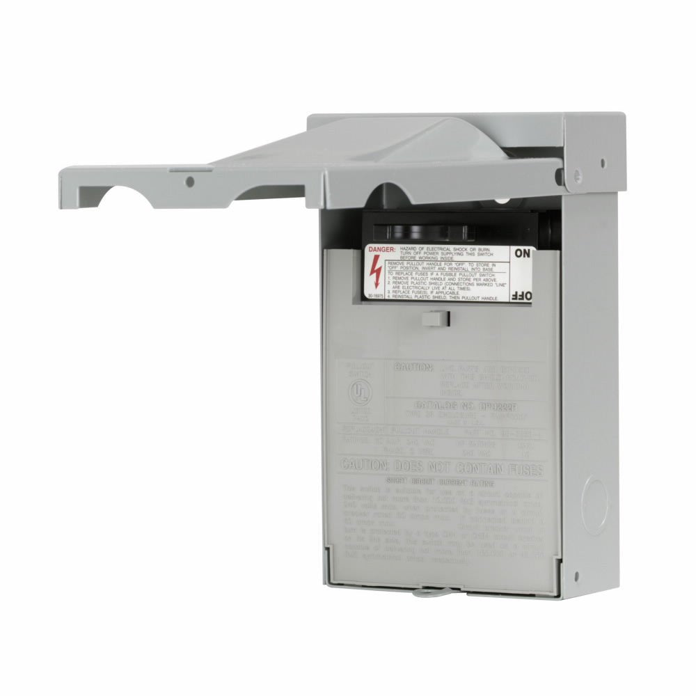 Non-fused pullout, 60A, 120/240V, 10 kAIC, #14-3 Cu/Al 60°C or 75°C, NEMA 3R Galvanized Steel enclosure, 3 hp at 120V, 10 hp at 240V, ANSI 61 Gray