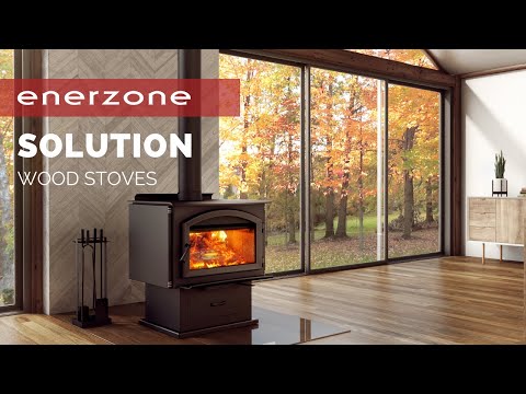 The Enerzone Solution 3.5 is a large-capacity wood stove designed for serious heating needs with a refined aesthetic. With its expansive 3.5 cu. ft. firebox and up to 110,000 BTUs of output, it efficiently heats spaces between 1,000 and 2,700 sq. ft. while maintaining ultra-low emissions at just 1.6 g/h. Its sleek side panels with engraved grooves, curved top, and arched cast iron door balance elegance with strength, creating a powerful centerpiece for your home.
