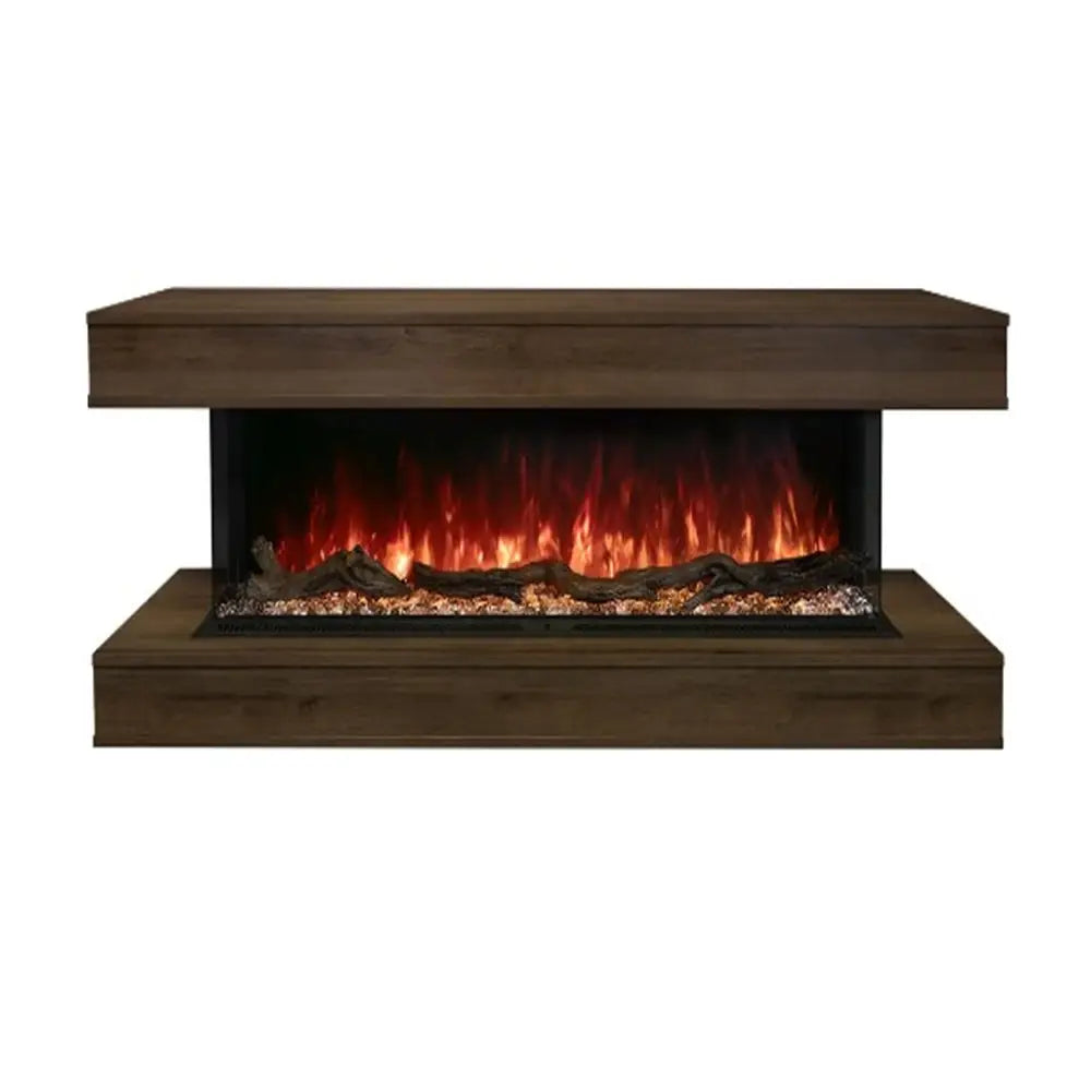 Modern Flames 80-Inch Mantel Weathered Walnut Wall-Mounted Floating Electric Fireplace Cabinet