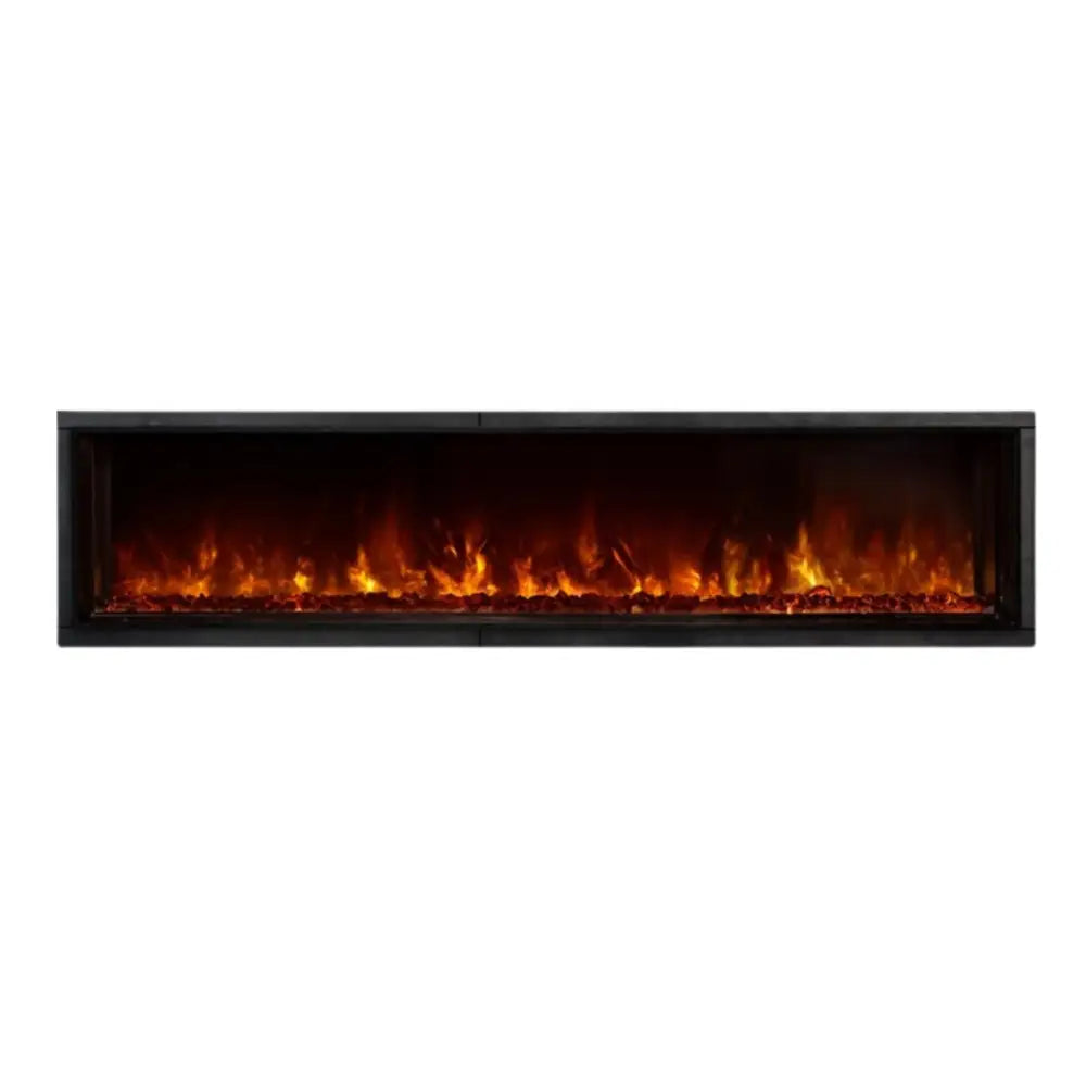 The Modern Flames LFV2-100/15-SH Landscape FullView 2 is a premium 100-inch built-in electric fireplace that offers a sleek, modern alternative to linear gas units. Its frameless edge-to-edge glass design delivers a stunning panoramic flame view and fits seamlessly into a wide range of contemporary interiors. With orange-to-blue flame color transitions and a glowing coal ember bed, this fireplace creates an authentic flame experience without the need for gas or venting.