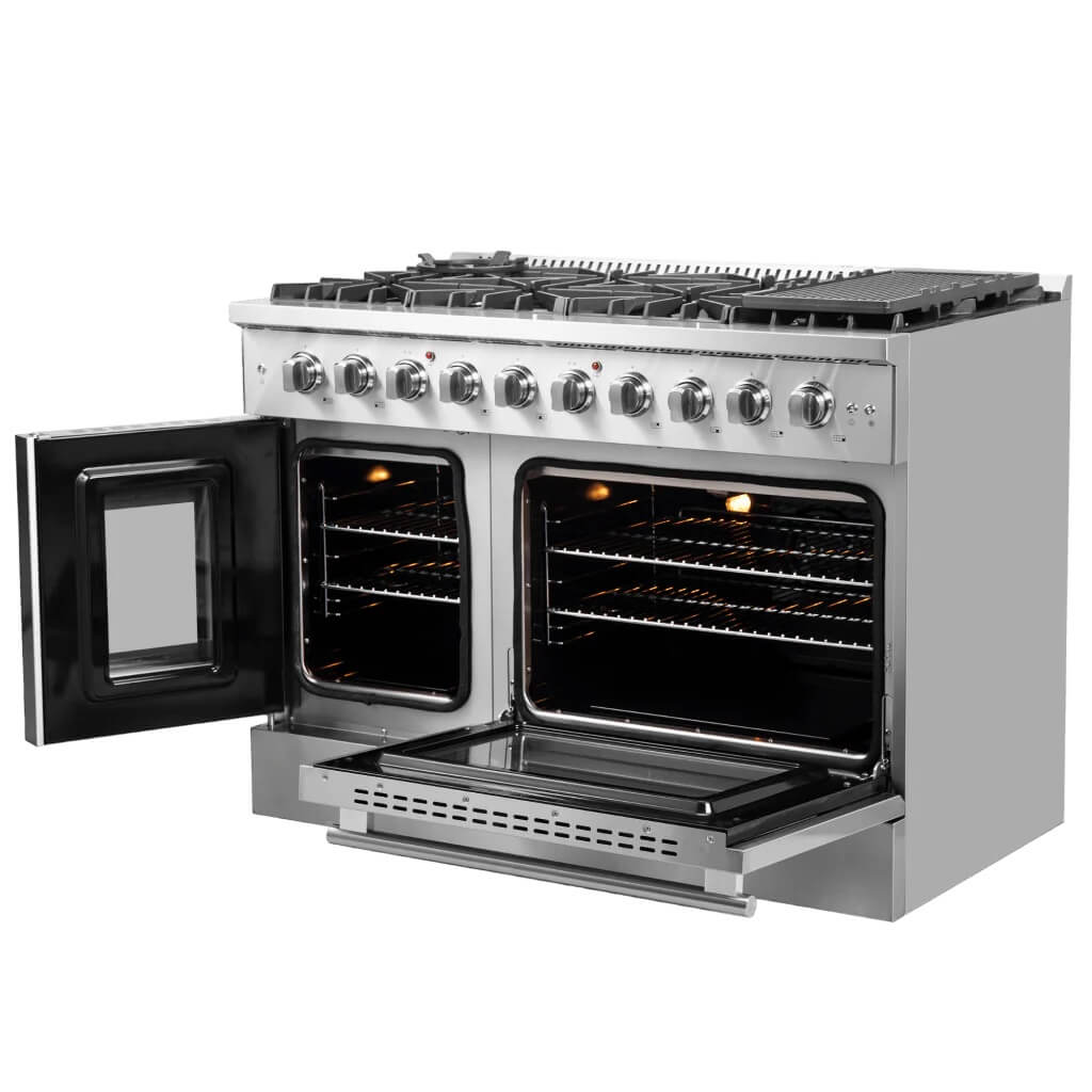 Forno 48-Inch Galiano Gas Range with 8 Burners, 107,000 BTU, and French Door Oven