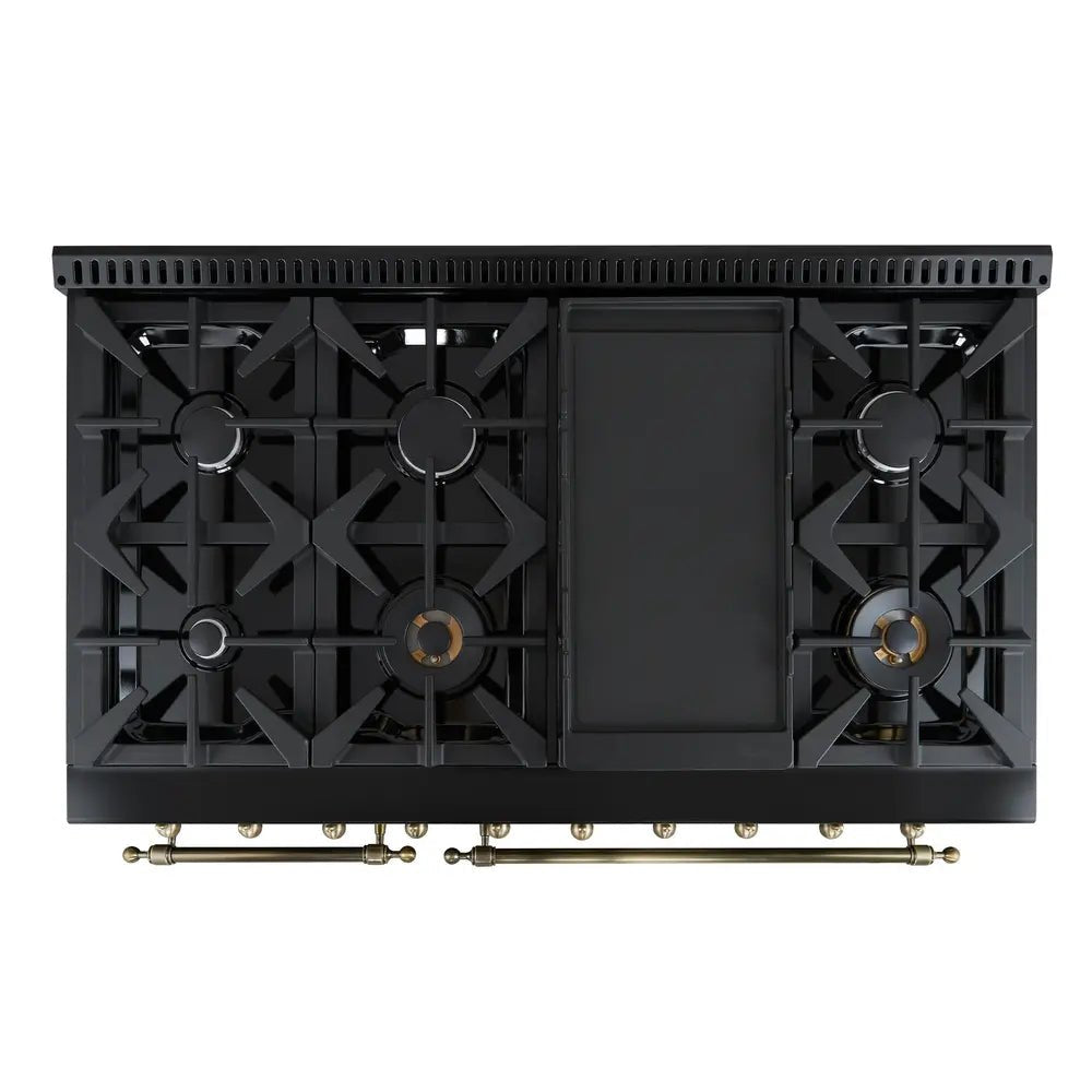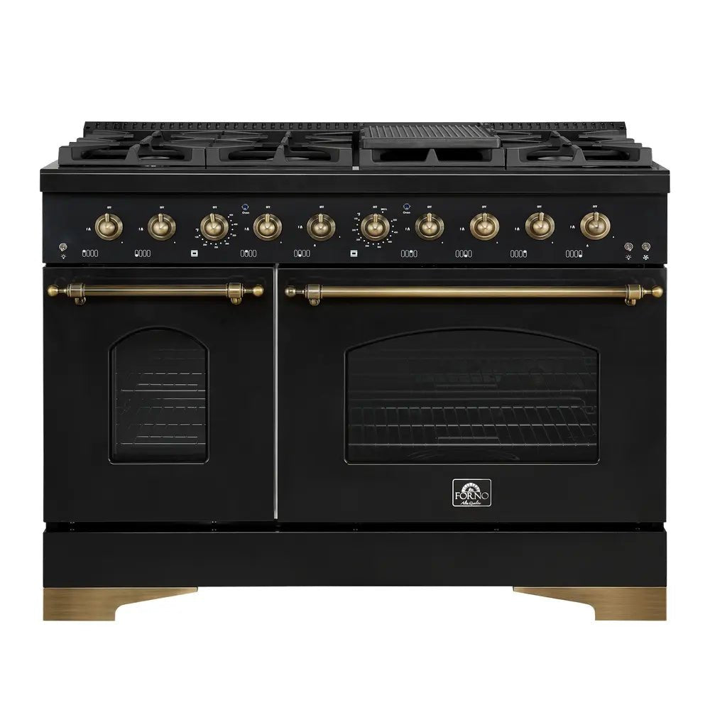 Forno Espresso Antico 48" Gas Range – Black with Antique Brass Accents