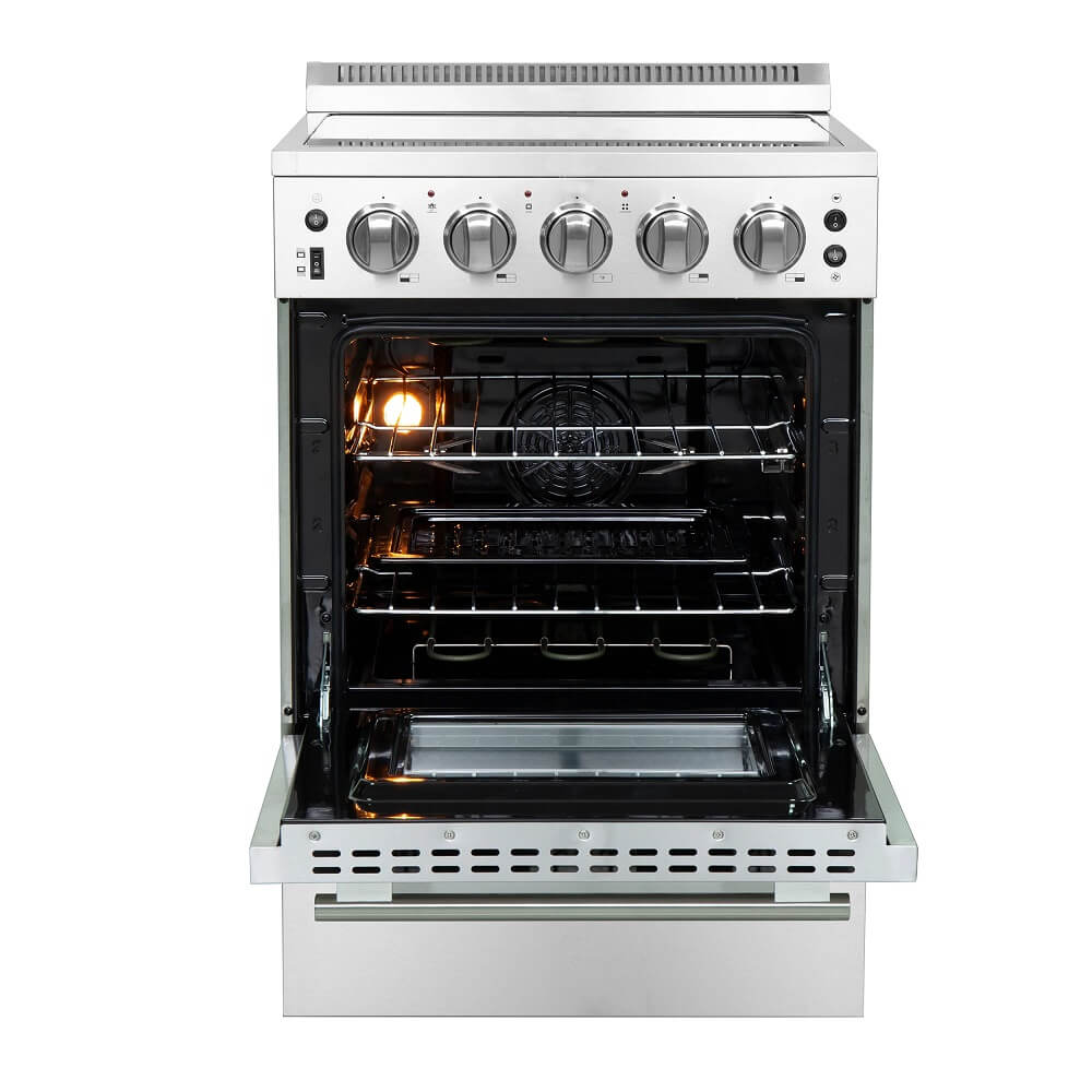 The Forno Loiano Professional 24-Inch Electric Range is the ultimate combination of style, functionality, and performance. With a 6,000W stove-top capacity and a 2.3 cu.ft. oven, this electric range is designed to meet all your cooking needs. Its sleek stainless-steel construction, advanced features, and elegant design make it a perfect fit for any modern kitchen.
