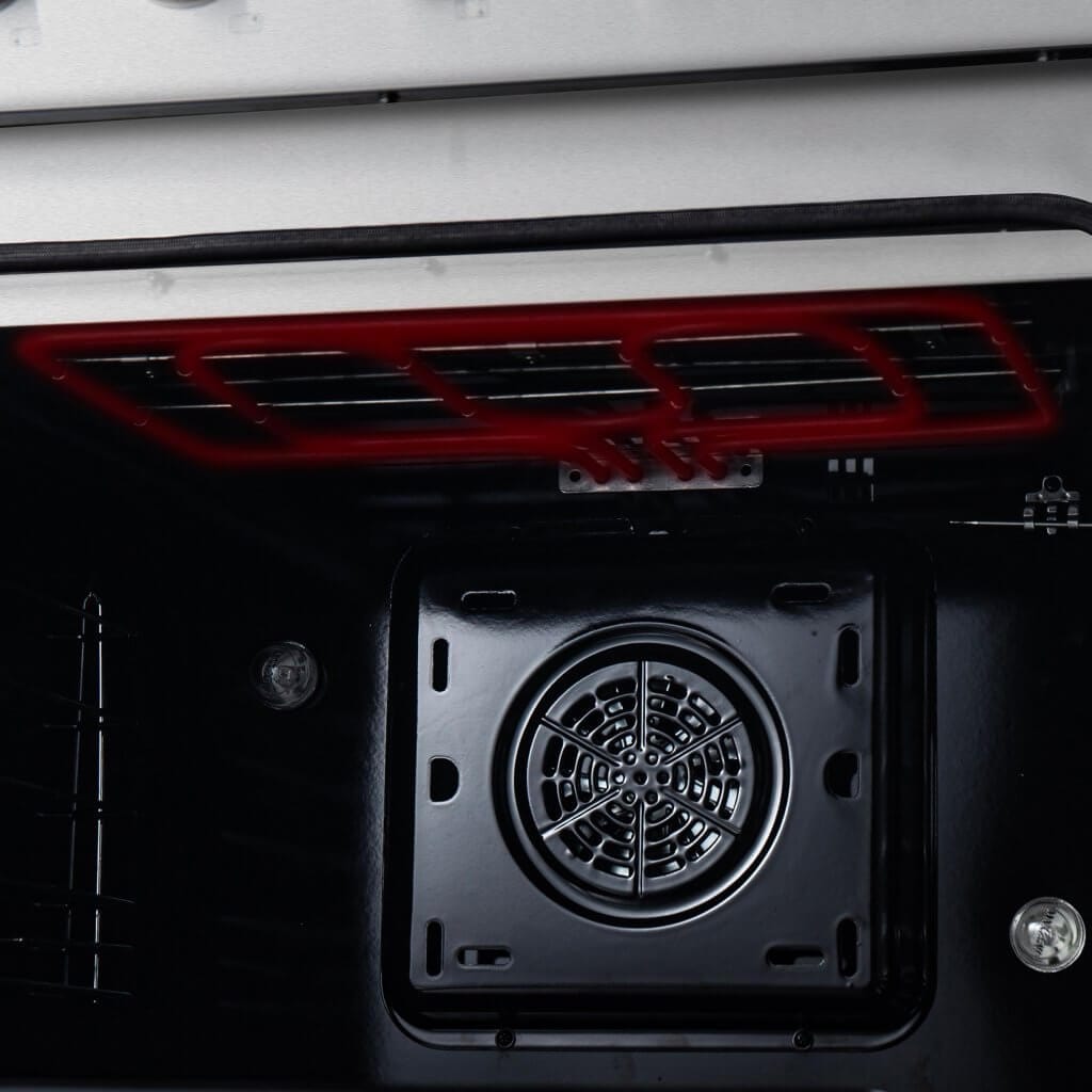 • Bright Oven Interior: The black enamel interior is enhanced with two halogen lights for improved visibility and easy maintenance.