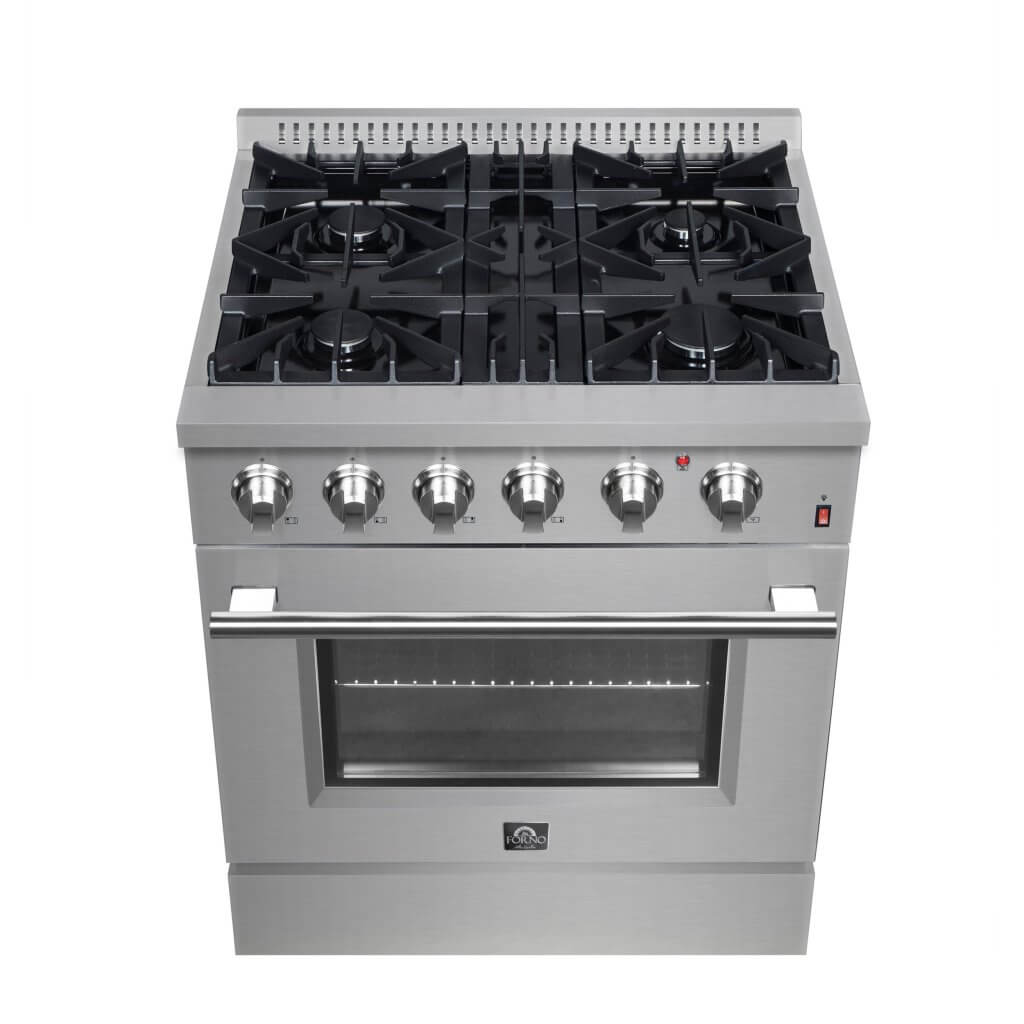 FORNO Marco 30 Inch Dual Fuel Range Stainless Steel, 4 Sealed Burners – 37,000 BTU, 4.32 cu.ft. True Convection Oven FFSGS6197-30