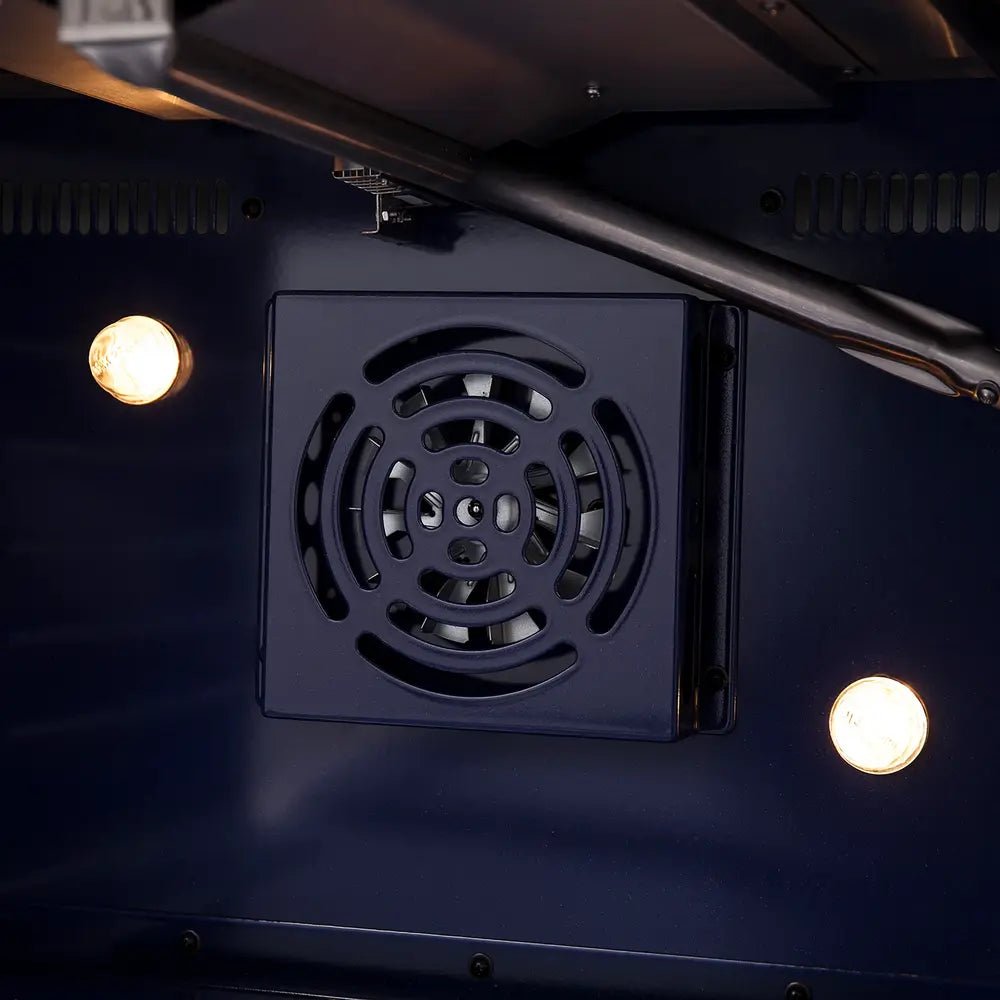- Speckled blue enamel oven interiors ensure easy cleaning and durability