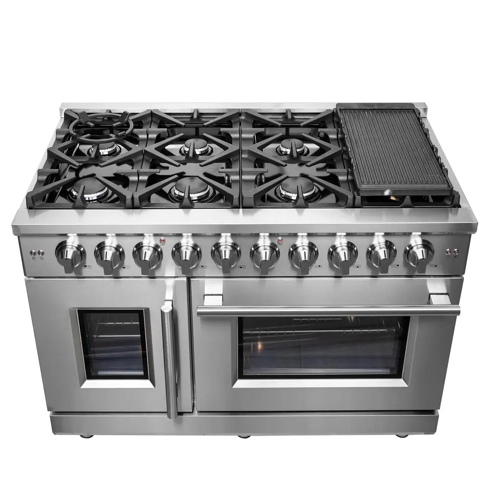 Forno Massimo 48-Inch Freestanding French Door Gas Range with Left Swing Oven Door