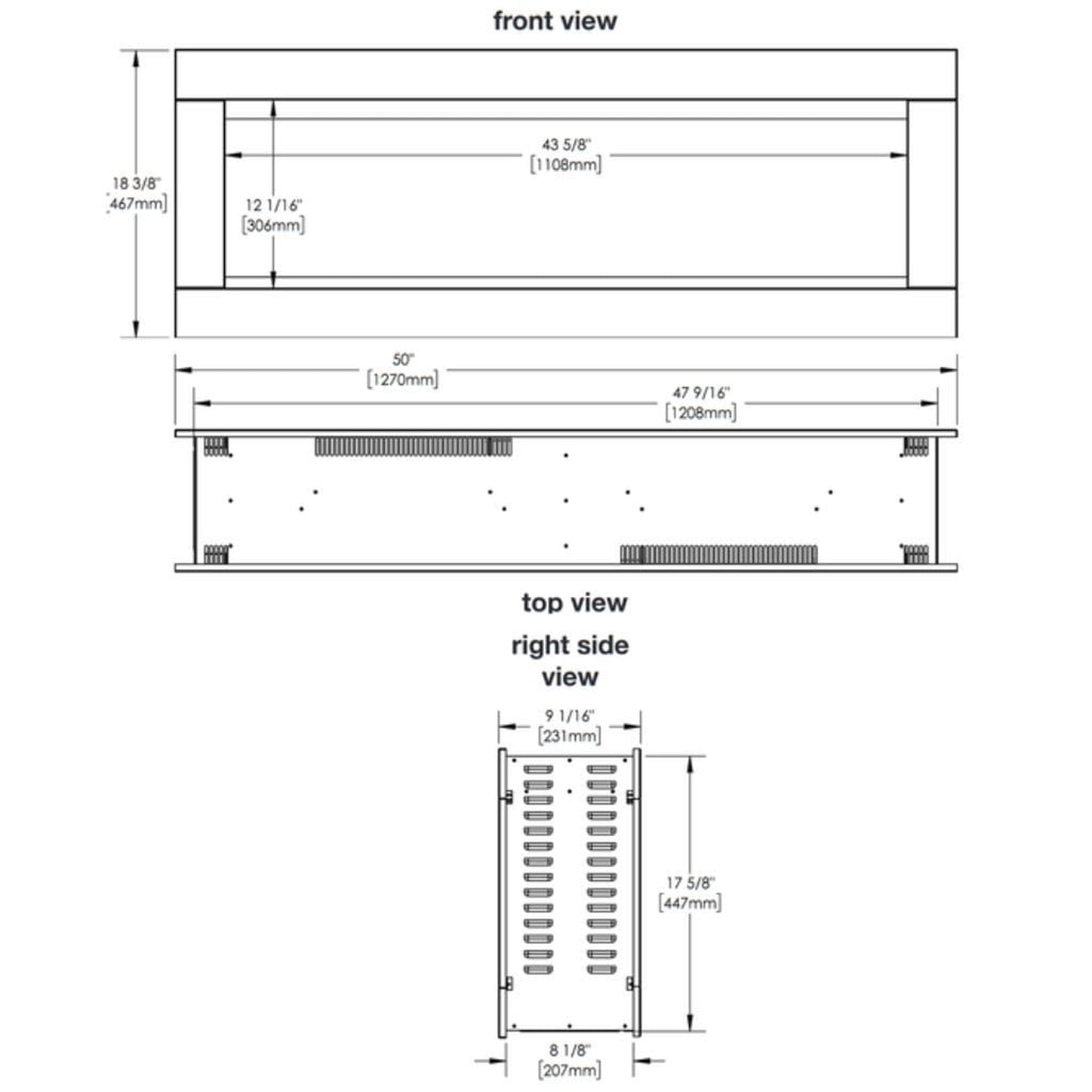 • Fireplace opening area of 18 3/8" height by 50" width per side