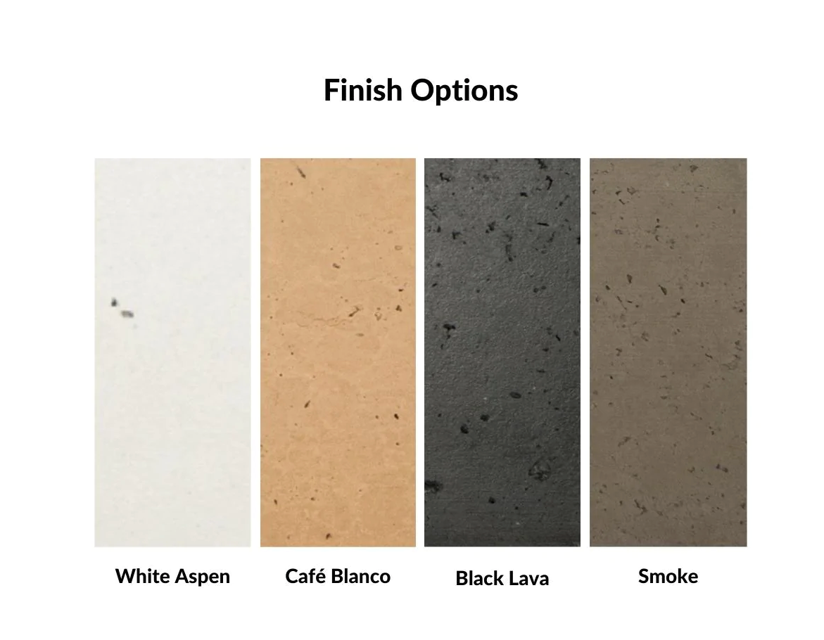 Four elegant color options: White Aspen, Café Blanco, Black Lava, or Smoke