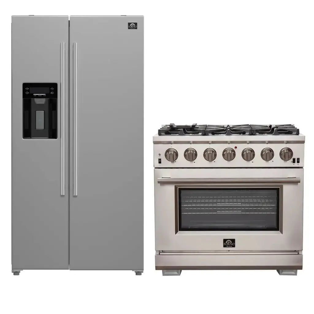 Upgrade your kitchen with the perfect balance of sophistication, functionality, and performance offered by the FORNO Premium 2-Piece Kitchen Bundle. This set combines powerful cooking capabilities with sleek and organized refrigeration, designed to transform your culinary space into a modern masterpiece. The bundle includes the Capriasca 36" Stainless Steel Gas Range and the Salerno 36" Side-by-Side Stainless Steel Refrigerator, both featuring a stunning stainless steel finish to complement any contemporary kitchen.