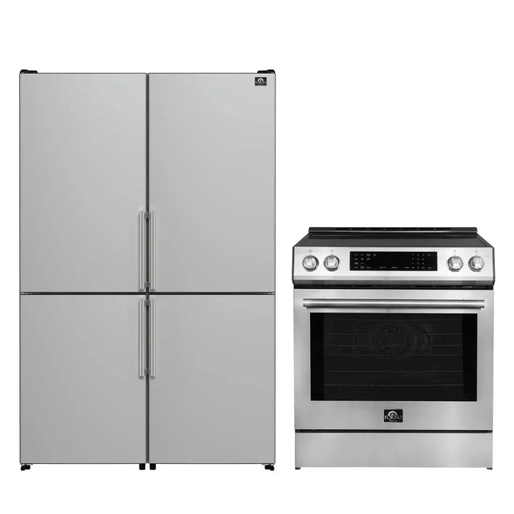 Elevate your kitchen with the FORNO Premium 2-Piece Kitchen Bundle, a perfect combination of style, functionality, and performance. This set features a sleek stainless steel finish, offering an elegant design that complements any modern kitchen. The bundle includes the Donatello 30" Induction Range (FFSIN0905-30) and the Guardia 46.8" Bottom Freezer Refrigerator (FFFFD1778-48), delivering exceptional cooking and refrigeration capabilities.