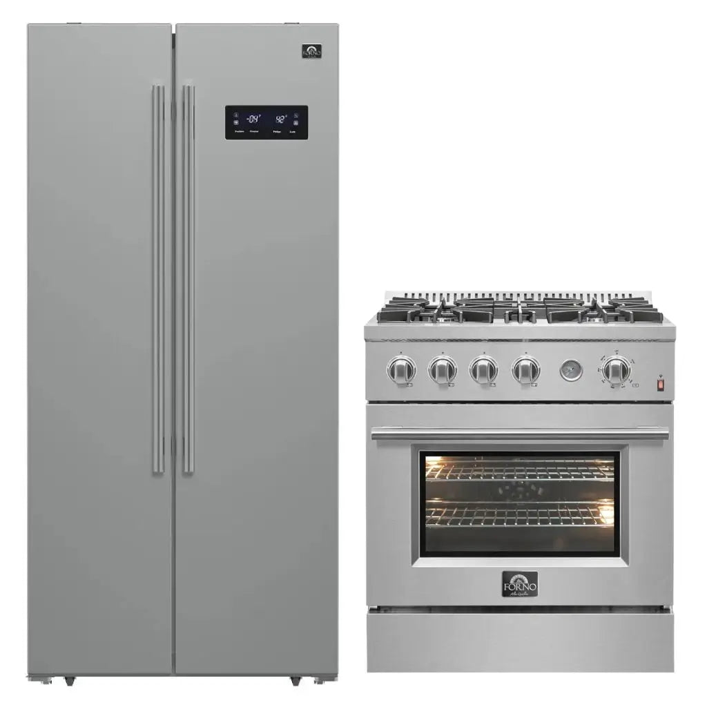 FORNO Premium 2-Piece Kitchen Bundle: Gas Range & Side-by-Side Refrigerator
