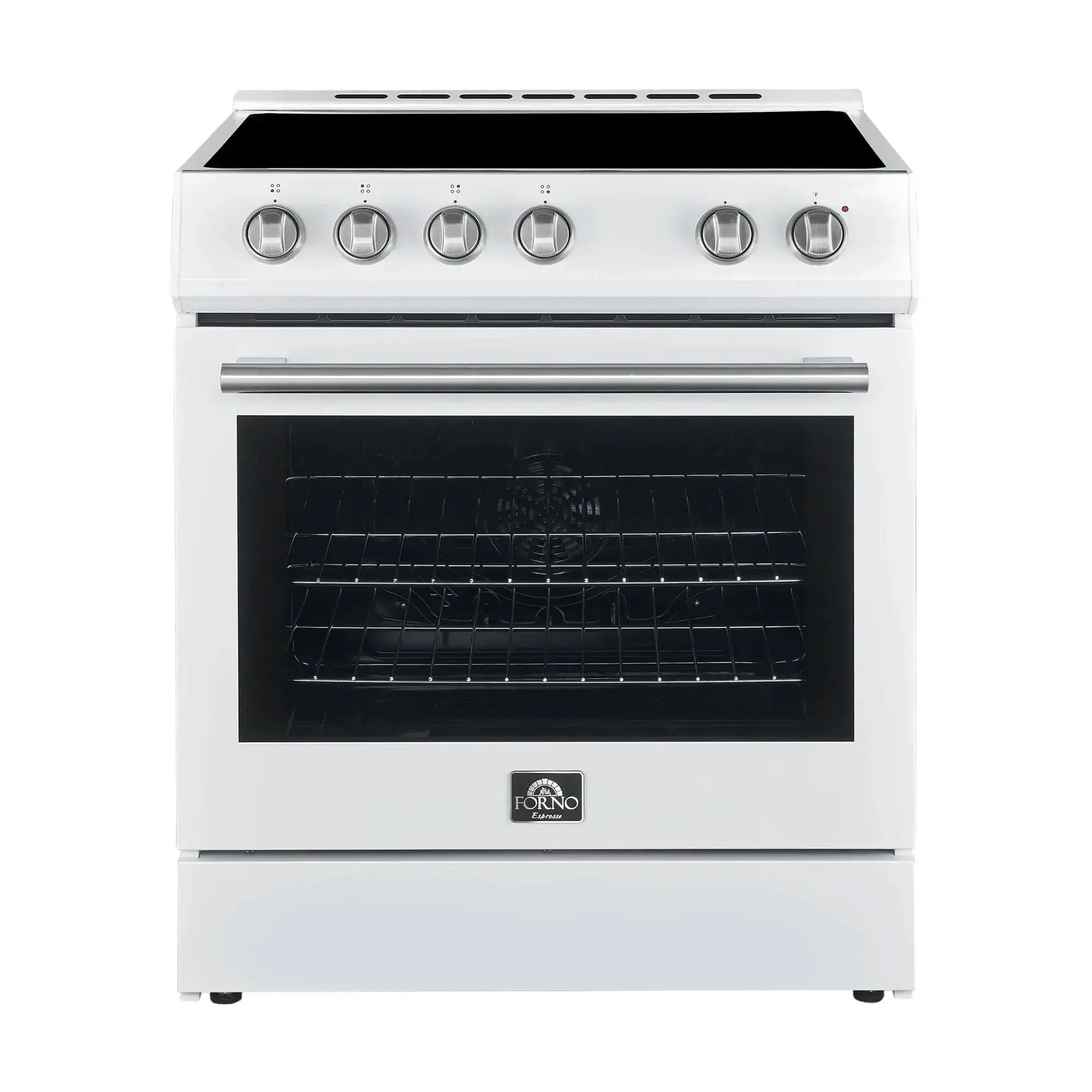 Upgrade your kitchen with the FORNO Premium 3-Piece Kitchen Bundle, a harmonious combination of style and functionality. Each appliance in this bundle features a sleek white finish, offering a modern and elegant look to elevate your kitchen. This package includes the Leonardo Espresso 30" White Electric Range (FFSEL6012-30), the 30" White Under Cabinet Range Hood (FRHUC5255-30), and the 31" White Bottom Freezer Refrigerator (FFFFD1785-31WHT), delivering exceptional performance and timeless design.