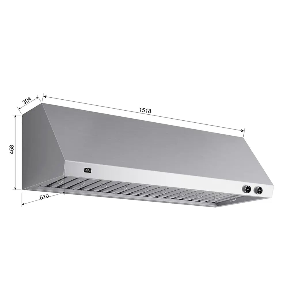 Enhance your kitchen with the Forno Biagio 60" Wall Mounted Range Hood, designed for high-performance cooking in larger kitchens. Featuring a powerful 1,200 CFM dual motor, durable stainless steel construction, and easy-to-use controls, this range hood combines functionality with a modern aesthetic for the ultimate ventilation solution.