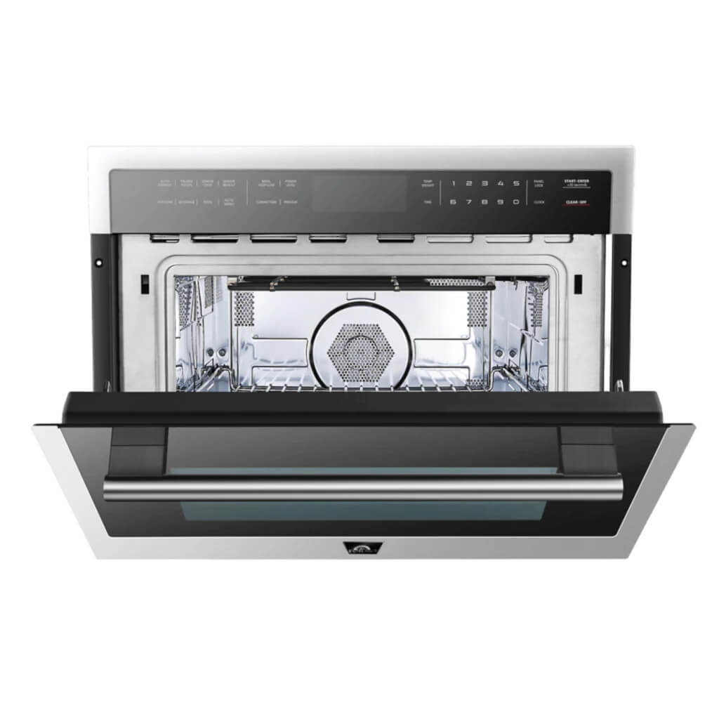 The Forno 24-Inch Compact Built-In Oven delivers efficient cooking performance in a sleek, space-saving design. Perfect for smaller kitchens or as an additional cooking option, it features a 1.6 cu.ft. capacity, 1,000 watts of cooking power, and 11 adjustable power levels. Six pre-set cooking options, including settings for melting butter and softening ice cream, make it ideal for quick and versatile meal preparation. The included defrost rack enhances its functionality, offering convenience for everyday cooking tasks.