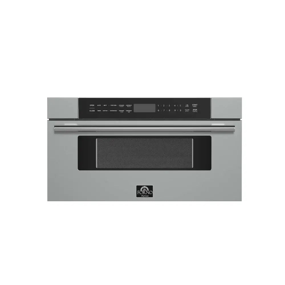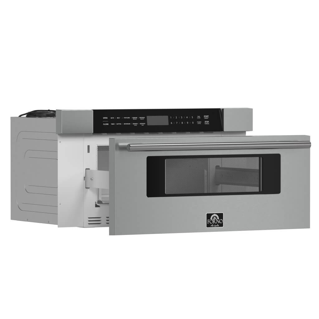 FORNO 30.1-inch microwave drawer with handle, stainless steel and black FMWDR3000-30