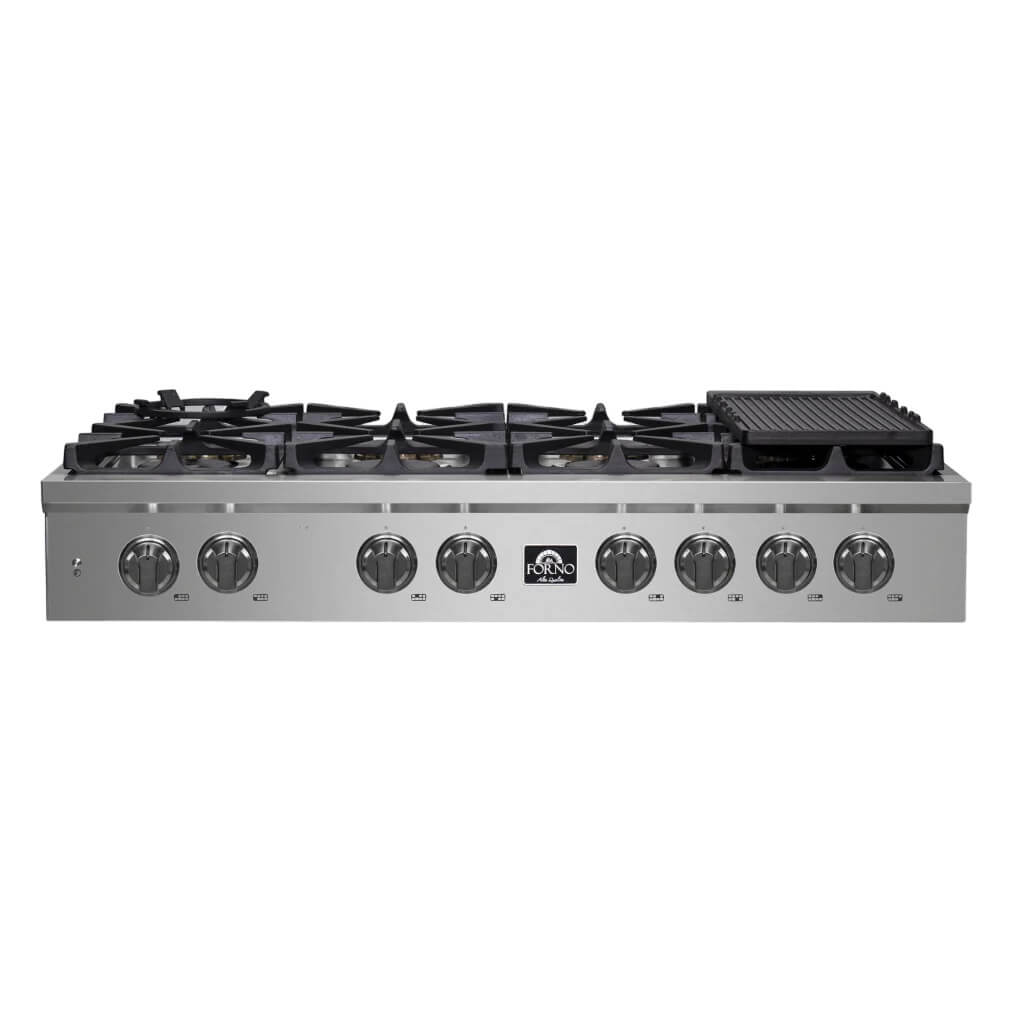 Forno Spezia 48-Inch Gas Cooktop – 8 Burners, Wok Ring, and Griddle
