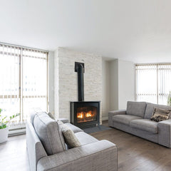 The Empire 22" Spirit Steel Direct Vent Gas Stove is a premium freestanding solution that combines efficient heating with contemporary design. Featuring Empire’s Slope Glaze Burner, it delivers a natural-looking flame and glowing ember bed that mimic the ambiance of a real wood fire.
