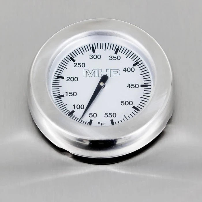 Stainless steel thermometer and damper vents for precise cooking control