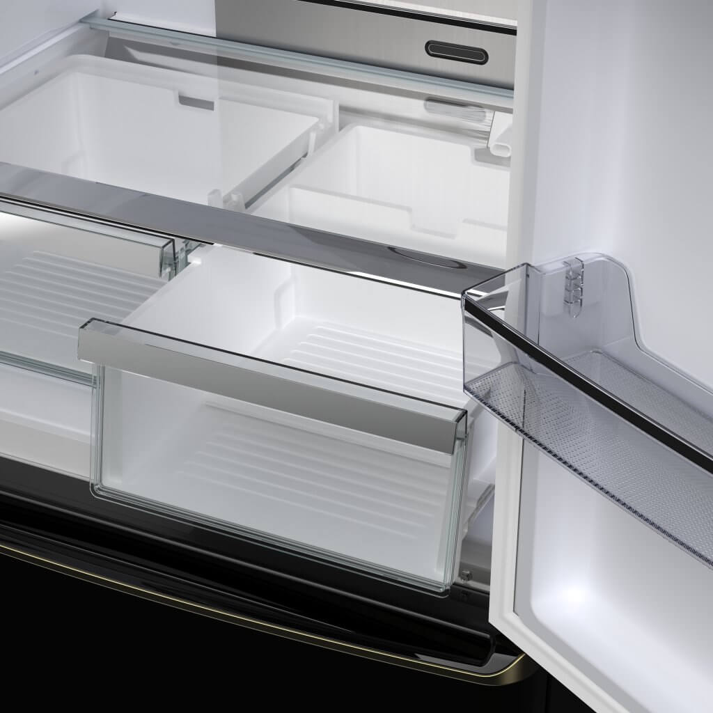 - Freezer Organization: Includes two full-width pull-out drawers and an extra freezer tray for optimal storage.
