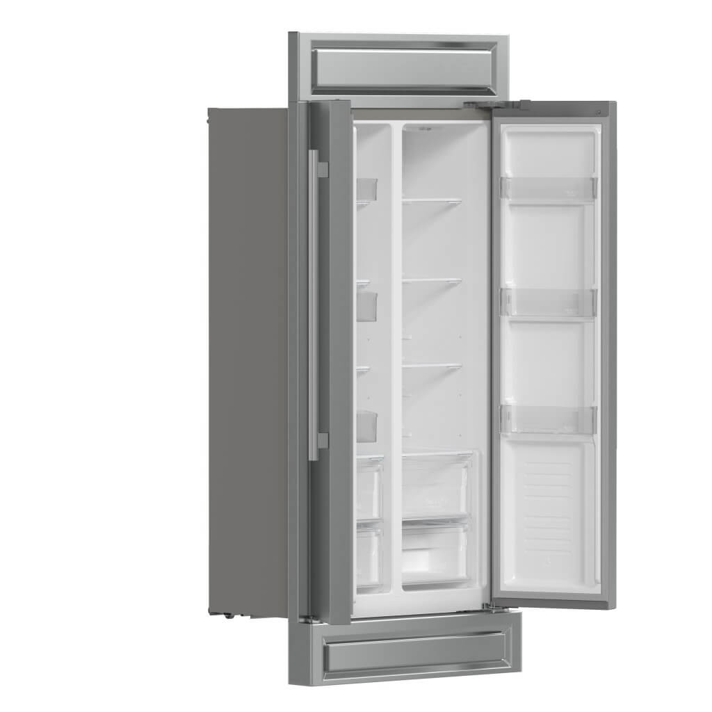 - Counter-depth design with decorative grill trim for a built-in appearance