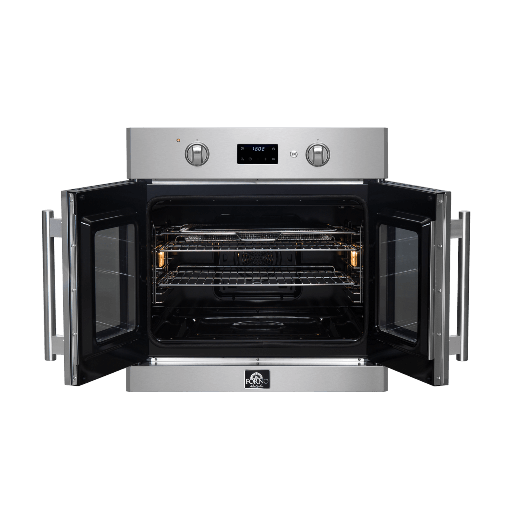 Experience the pinnacle of cooking innovation with the Forno Asti 30-Inch Electric French Door Wall Oven. Combining elegant French doors with advanced cooking functionalities, this oven is designed to enhance both the aesthetics and performance of your kitchen. With a spacious 3.68 cu. ft. capacity and a range of versatile features, including sous vide, true convection, and air fry capabilities, it offers unmatched convenience and precision. The stainless steel finish and black interior ensure durability and style, making the Asti wall oven a centerpiece in any modern kitchen.