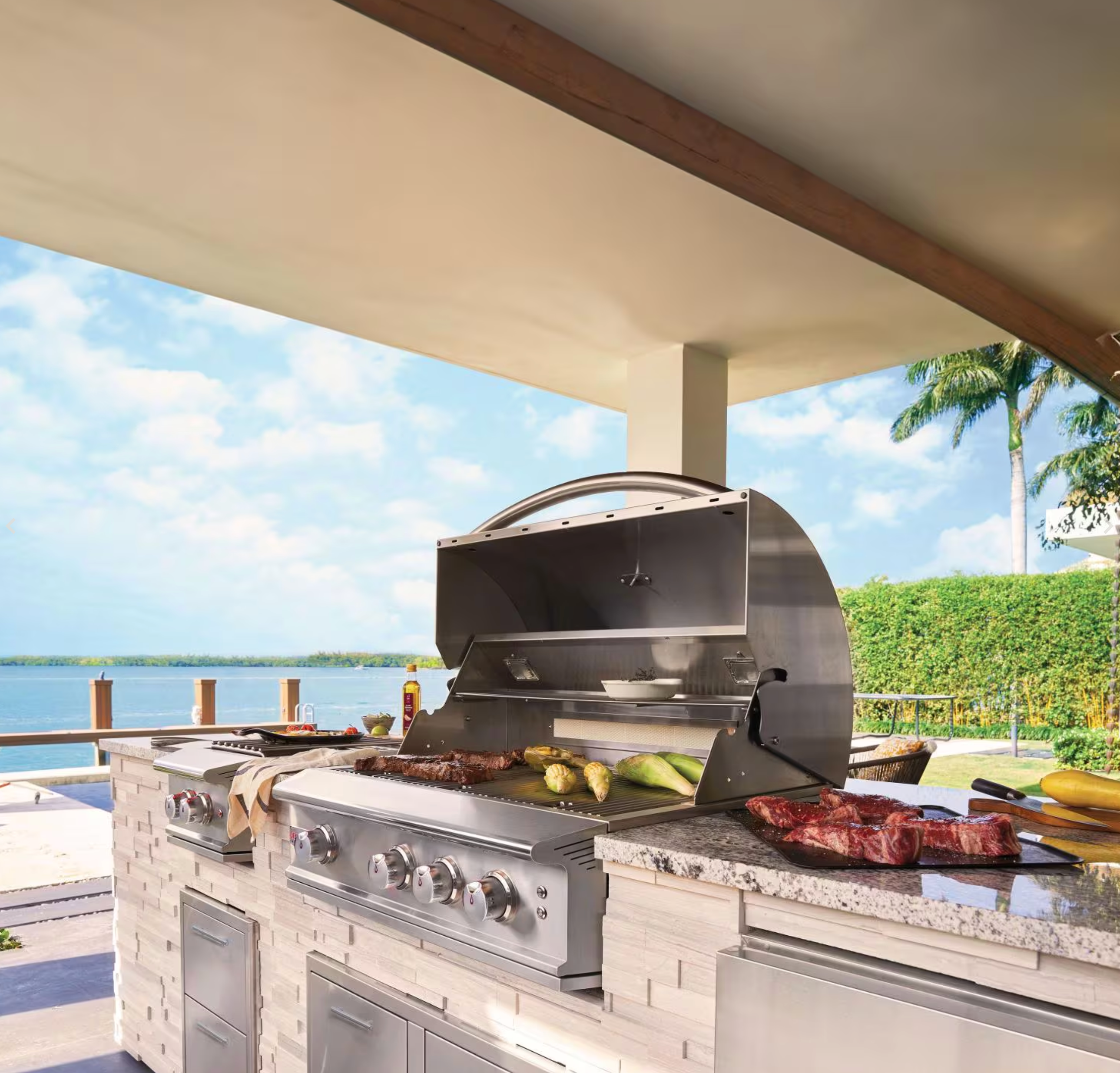 Internal halogen lights and LED-backlit knobs enable nighttime grilling