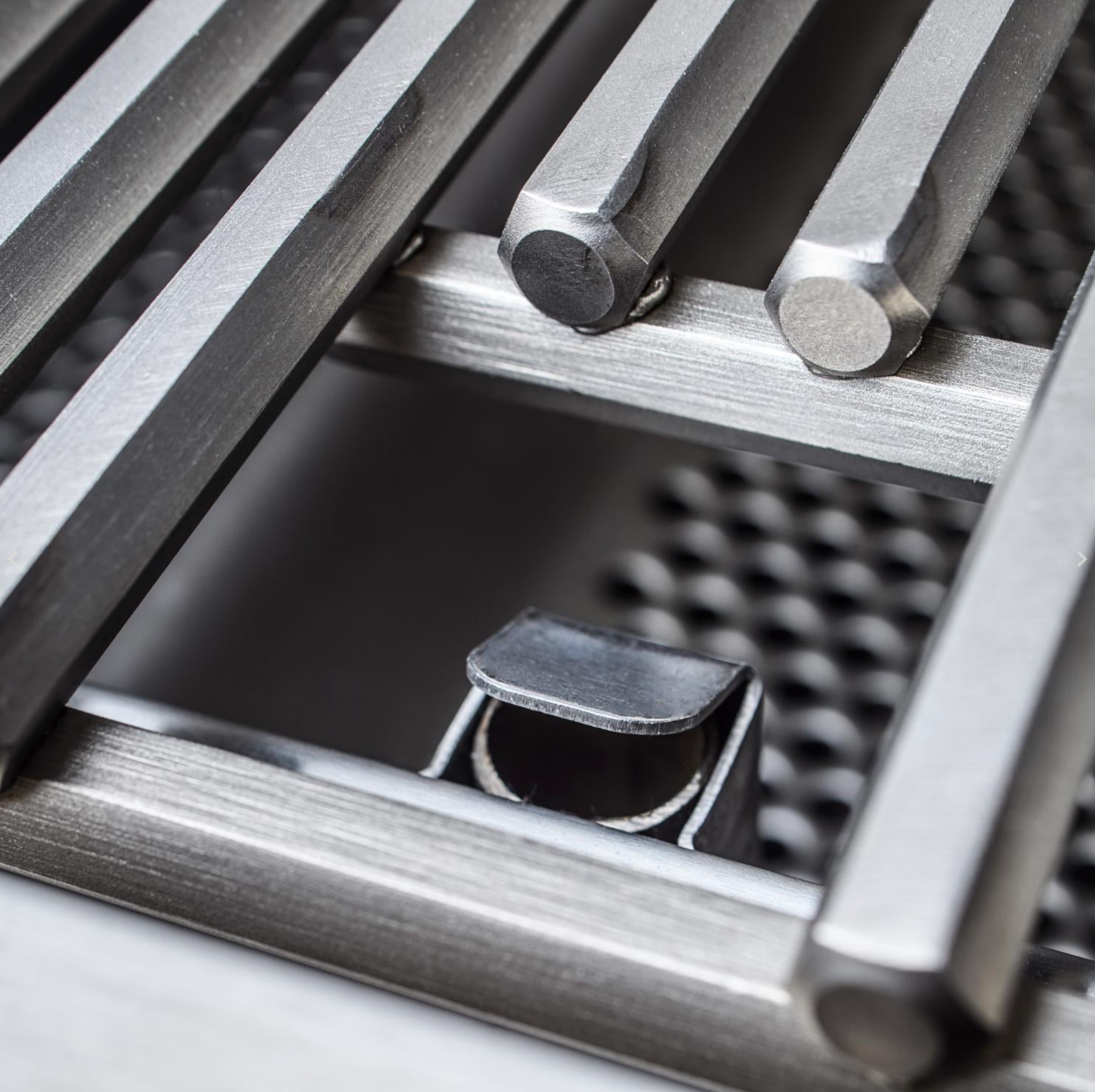 Flame stabilizing grids reduce flare-ups and create even heat distribution across the grilling surface